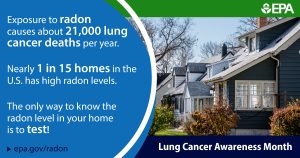 Radon is the number one cause of lung cancer among non-smokers, according to EPA estimates. Overall, radon is the second leading cause of lung cancer. Radon is responsible for about 21,000 lung cancer deaths every year. About 2,900 of these deaths occur among people who have never smoked.